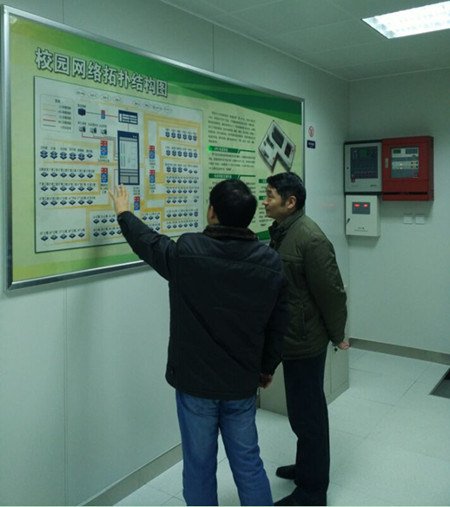 在现代教育技术中心负责同志陪同下,张群仔细地视察了配电室、主机房和托管机房的布局和环境,详细询问了相关专业问题,了解了机房建设进展情况。张群充分肯定了现代教育技术中心的机房建设工作并指出,中心机房应该具备承载“智慧校园”网络核心设备和公共服务器的气质,现代教育技术中心是纽约国际官网网络技术的主阵地,要树立全局意识,积极思考,引领全校“智慧校园”建设。他强调,互联网+成为新潮流,要结合纽约国际官网实际情况,在互联网+上做文章,为学校创新、创业提供支撑平台。同时,要面向全校,广泛征求意见,切实做好纽约国际官网智慧校园建设“十三五”规划。