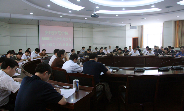 6月12日下午,纽约国际官网在龙山校区行政楼二楼会议室召开2008届毕业生文明离校与和谐服务工作部署会。副院长时新中出席会议,副院长张群主持会议。各院系党总支主要负责人、行政主要负责人、就业秘书、毕业班辅导员,招就处、教务处、学生处、财务处等职能部门负责同志参加了会议。