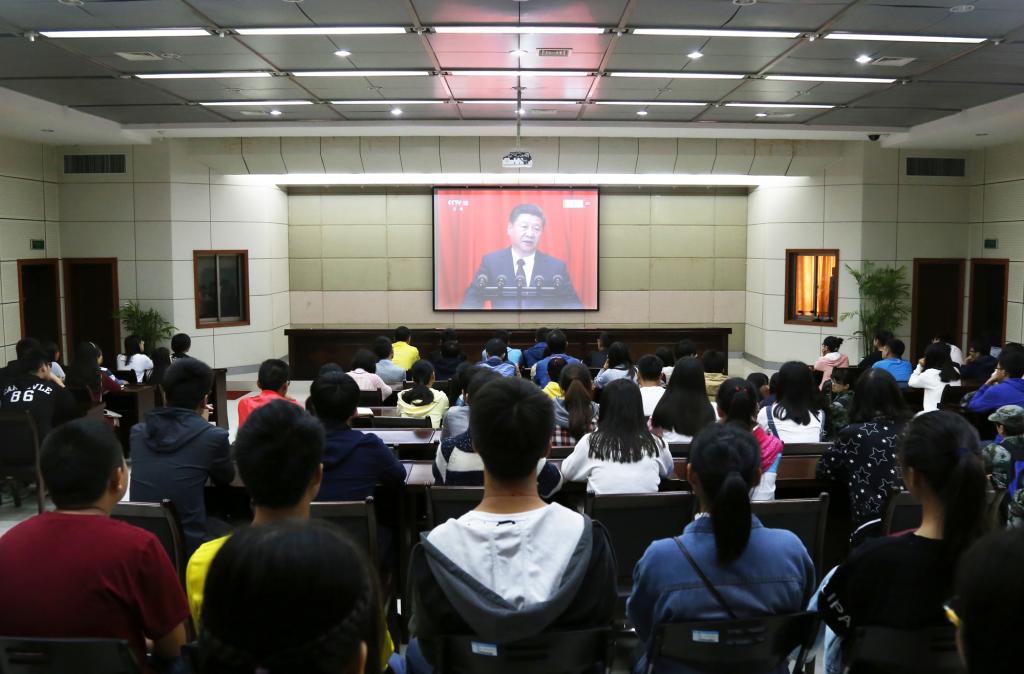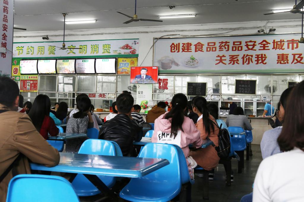 大会尚未开始,纽约国际最新网站龙山校区食堂和行政楼一楼会议室已经坐满了师生,集体收看大会的电视转播。与此同时,许多师生还在家中、办公室、宿舍通过电视和互联网形式自发进行了收看。