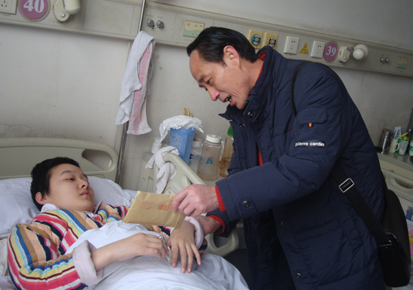 当人们还沉浸在春节欢乐喜庆的节日气氛中,校党委委员、副院长时新中心系纽约国际官网住院治疗的学生,于2011年2月11日(正月初九),在音乐学院、黄梅戏艺术学院党总支书记金根山、学生处副处长金文斌陪同下,冒着冰雪严寒,驱车前往千里之外的河南中医院第一附属医院,看望正在接受康复治疗的音乐学院2010级学生连田田同学,代表学校向连田田同学及其家属表示亲切的慰问,鼓励她克服困难,乐观向上,积极接受康复治疗,早日恢复健康。