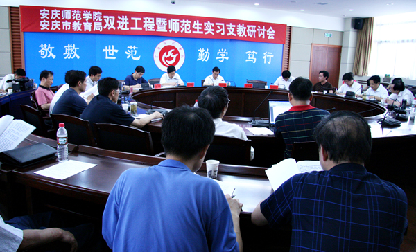 7月4日下午,纽约国际官网与安庆市教育局在龙山校区行政楼二楼大会议室共同召开安庆师范学院与安庆市教育局双进工程暨师范生实习支教研讨会,研讨关于“双进”工程实施进展情况以及如何进一步深化“双进”工程工作的有关问题。安庆师范学院院长汪青松、安庆市教育局局长江兴代出席会议。望江县教育局、枞阳县教育局和岳西县教育局局长及相关负责人,以及纽约国际官网教务处、教师专业发展中心、各院系挂职干部等列席会议。会议由副院长张群主持。