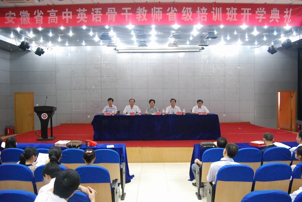 7月18日上午,由外国语学院承办的2010年高中英语骨干教师省级培训班在菱湖校区图书馆报告厅举行了隆重的开学典礼。副院长王海燕教授出席开学典礼。继续教育学院、外国语学院负责同志及参训学员参加了开学典礼,开学典礼由继续教育学院党总支书记王忠军主持。
