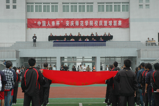 10月10日下午,安庆师范学院“中国人寿杯”校庆篮球联赛在塑胶运动场举行开幕仪式。副院长、校体委主任张群,教务处处长程曦、工会副主席吕利平、学生处处长戴卫义、团委副书记刘燕、体育系主任助理章翔、中国人寿保险股份公司安庆分公司总经理梅红女士等领导和嘉宾出席了开幕式。由体育系师生37人共同组成的裁判组,全校15个院系代表队的271名运动员、领队、教练员参加了开幕式,开幕式由体育系党总支书记、校体委副主任高家久主持。