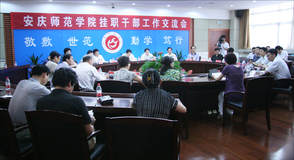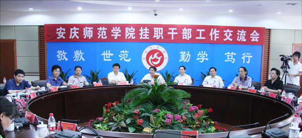 会上,挂职安庆市发改委副主任、经济与管理学院院长汪时珍教授,挂职安庆市环保局副局长、资源环境学院院长周葆华教授,挂职安庆市科技局局长助理、科技处副处长吴琼教授,挂职安庆市商务局局长助理、经济与管理学院副院长杨国才教授,挂职安庆市园林管理局局长助理、生命科学学院副院长魏和平博士,挂职安庆市经信委主任助理、经济与管理学院副书记李亦亮博士,挂职安庆市教育局局长助理、教务处副处长吴云助,挂职安庆市农委主任助理、生命科学学院于道平教授,挂职安庆市旅游局局长助理、资源环境学院郭永昌博士,挂职安庆市林业局局长助理、生命科学学院范志强博士先后发言,汇报了各自挂职工作的成绩和收获。