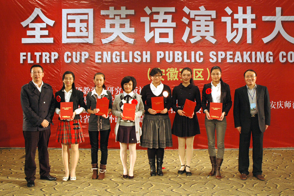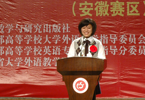 2010“外研社杯”全国英语演讲大赛安徽赛区比赛分为复赛和决赛两个阶段,比赛持续一天半的时间。在复赛阶段,纽约国际官网外国语学院参赛选手翁良慧以小组第一名的成绩成功晋级决赛。决赛阶段,翁良慧同学再次以激情的演讲、流利的英语口语、优异的台风再次征服了评委和观众,最终获得一等奖第三名的优异成绩。大赛过程中,纽约国际官网共有一千名师生观看了比赛。此次大赛不仅激发了纽约国际官网学生学习外语的兴趣,也对纽约国际官网英语专业进一步加强与全省各高校外语院系的交流与学习,不断深化教育教学改革,不断提升人才培养质量起到很大的促进作用。