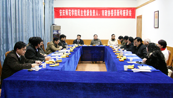 党委组织部部长陈光明,党委宣传部、统战部部长、市政协委员朱守良,九三学社安庆市委主委胡万宝,致公党安庆市委筹委会主任吴根华,民革安庆市委副主委、市政协常委张孝民,民盟安庆市委副主委、市政协委员张启树,九三学社安庆师范学院支社主委、市政协常委钱萌,民革安庆师范学院支部主委、市政协委员刘道武,民盟安庆师范学院支部主委、市政协委员黎莉,民进安庆师范学院支部主委李义中,第十二届市政协常委谢源,市政协常委魏远征,市政协委员杨国才、汪时珍,农工民主党成员、宜秀区政协委员李皙等参加会议。会议由校党委宣传部、统战部副部长孙永玉主持。