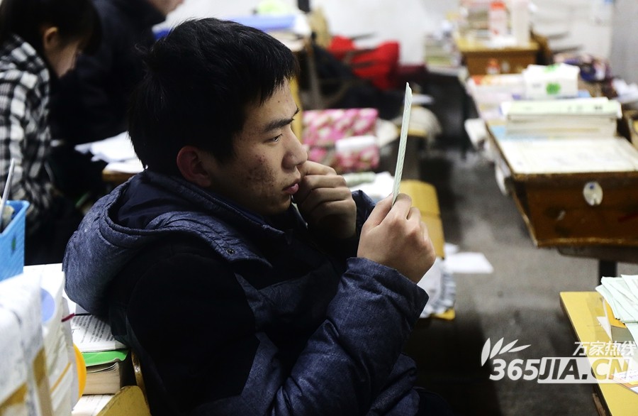 2014年1月3日,全国硕士研究生入学考试前一天夜晚。安庆师范学院学院自习室里,一名考生正在专注地复习。(陈东摄影)