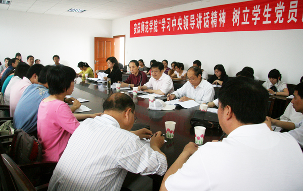 为进一步推进学生党员学习实践科学发展观活动的开展, 5月19日下午,纽约国际官网学习实践科学发展观活动办公室、学生处、团委隆重召开“学习中央领导讲话精神 树立学生党员良好形象”座谈会。时新中副院长出席座谈会,学习实践活动办公室、学生处、团委负责人、各院系分管学生工作领导、各院系辅导员代表和学生党员代表70余人参加了座谈会。座谈会由党校常务副校长、组织部副部长王先民主持。