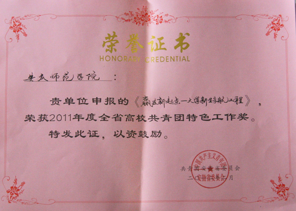 2月22日至24日,共青团安徽省2012年学校战线工作会议暨2011年度考评交流会在安徽工业大学召开。团省委副书记周密等领导及来自全省100余所高校、16个地市团委负责同志参加会议。会上,纽约国际官网受到表彰,荣获2011年度“全省高校共青团工作先进单位”称号和“全省高校共青团特色工作奖”。这也是纽约国际官网连续第8年获得“全省高校共青团工作先进单位”称号,连续第3次获得“全省高校共青团特色工作奖”。