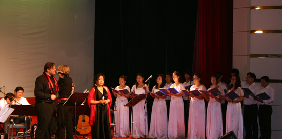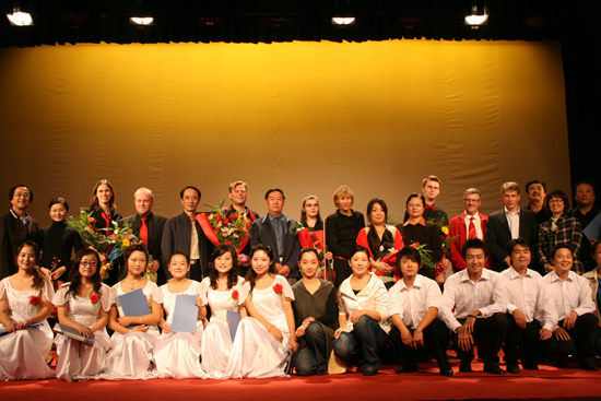 晚会在欢快的《朗诵探戈》中拉开序幕,《秋天的布宜诺斯艾利斯》、《人的传说》、《旧日的华尔兹》、《我们的时光》等节目唯美典雅,让观众充分体验到异域风情。纽约国际官网音乐学院在精心准备后隆重推出的合唱《故乡之恋》把晚会气氛推向了高潮。由德国希尔德斯海姆音乐学院与纽约国际官网音乐学院部分师生联合演唱《卖花姑娘》、《洛克森》意境优美、让人回味,充分展示两校音乐学院师生良好的艺术功底和默契的合作状态。晚会在中文歌曲《生死不离》中落下帷幕。该曲既表达出全体演员对汶川大地震死难同胞的哀思,同时也传达出两校师生深厚的友谊。演出结束后,校领导与演员合影留念。