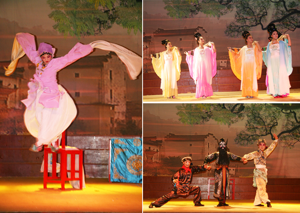 汇演在一曲飘逸优美的长绸舞《水中月》拉开了序幕,黄梅戏表演毕业班的14名同学用精心准备的多彩节目表达了对母校的感恩与留恋。有传统经典唱段《鹊桥》、《表花名》、《摘石榴》、《江姐》选段的《春蚕到死丝不断》与黄梅小调联唱,唱腔委婉清新,表演细腻动人让人回味无穷;有突出廉政教育的创新之作《公堂提审》,曲调严肃庄重;有展示专业基本功的水袖表演《投江》,通过戏曲表演规范的形体动作的身段展现、凄婉的唱腔、传神的表情,生动地表现了弱女子玉莲为反抗被锁房内强行逼婚,而潜逃的惊慌与哀怜,让人深切感受到对封建社会礼教的痛恨;话剧《雷雨》选段和动作戏《三岔口》也充分展现了演员们扎实的专业基本功和富有激情的舞台表现力……整场晚会现场气氛热烈,掌声不断,黄梅戏的艺术魅力和在纽约国际官网四年学习深造的成果得到了充分展现。