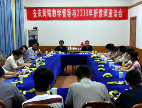 作为高校新进青年教师岗前培训的一项重要内容,安庆师院教学督导与2008年新进教师座谈会于2008年8月29日下午在菱湖校区红楼会议室举行。会议由人事处吴毅安处长主持,学校教学督导组组长汪德才等十位老教师、全体新进教师、人事处相关负责同志参加了会议。