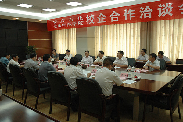 8月23日上午,纽约国际官网与安庆石化联合召开校企合作研讨会。中国石化安庆分公司总经理王彪,副总经理朱建平,副总经理李继炳;纽约国际官网党委书记何小祥,党委副书记、院长朱士群,党委委员、副院长汪时珍出席研讨会。安庆石化科技发展部、组织人事部及纽约国际官网科研处、化学化工学院院等部门负责同志参会。研讨会由朱建平同志主持。