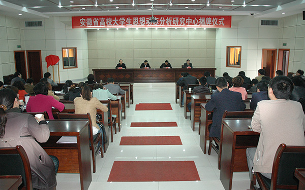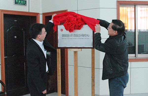 报告会前,闵永新副院长与王后林副处长共同为纽约国际官网 “安徽省高校大学生思想动态分析研究中心”揭牌。