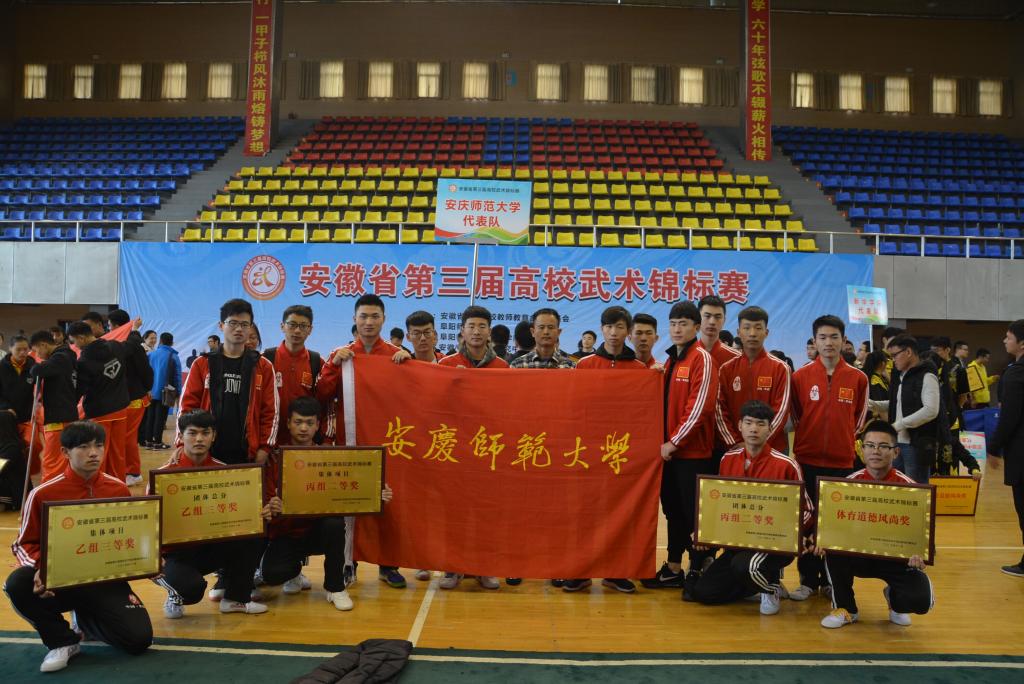本次比赛由安徽省高等院校教师教育合作委员会举办,共有14所高校参赛,参赛人数达200余人。体育学院高度重视此次比赛,派出23名运动员组成学校代表队参赛,在教练王思乐、许贵泉、胡哲纯、程启平的带领下,努力克服不利条件,参加了所有项目组的比赛并取得优异的成绩,展现了师生良好的精神面貌和较高的武术教学竞赛水平,为学校争取了荣誉。(程启平)