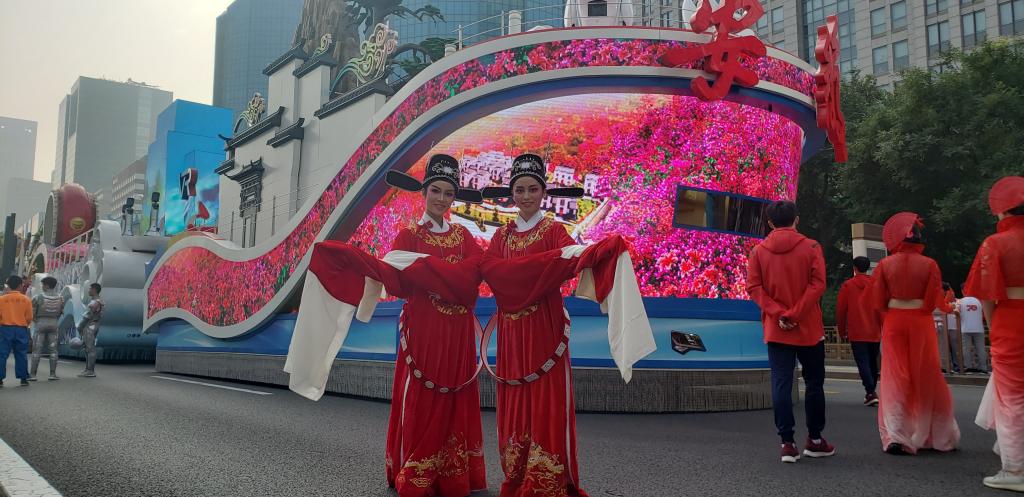 “参加国庆群众游行就是我最好的生日礼物!”今年读大四的刘宇轩目前正在再芬黄梅艺术剧院实习,9月30日她迎来了自己18岁成人礼。“家人都喜欢黄梅戏,我从小受他们熏陶逐渐热爱这门艺术,便开始学习黄梅戏表演。”她说,能够在新中国七十华诞将非遗文化黄梅戏展现给全国人民,自己感到非常骄傲。