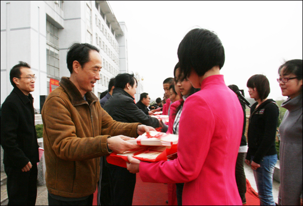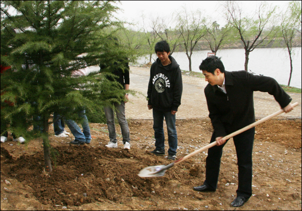 3月20日上午,一阵急雨过后,原本昏暗阴沉的天空霎时亮堂了起来,微带凉意的春风在双龙湖上荡起层层涟漪。此时,在湖畔南岸的空地上,一场隆重的国家奖学金、国家励志奖学金颁奖大会暨“励志林”捐植活动正在这里举行。全校近800名国家奖学金和国家励志奖学金获得者,捐献了近3万元奖金,为学校购置了300多棵香樟和雪松。