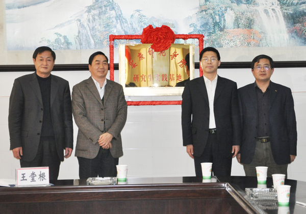 汪时珍副院长与岳西县教育局方国安局长共同为安庆师范学院研究生实践基地揭牌。
