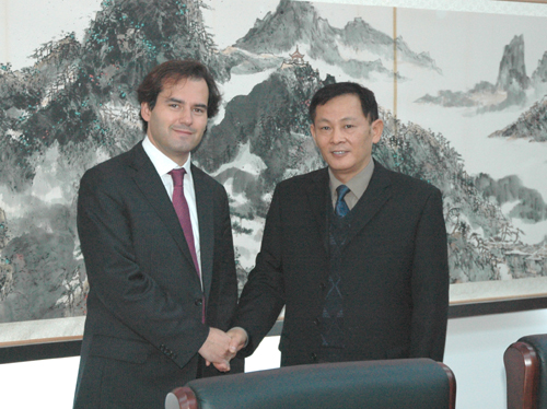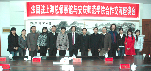 11月12日,在省教育厅外事处姚晓蕾老师的陪同下,法国驻上海总领事馆教育领事魏戈曼(GrégoryWegmann)先生和法国驻上海领事馆大学合作处陈悠耀女士来校访问。