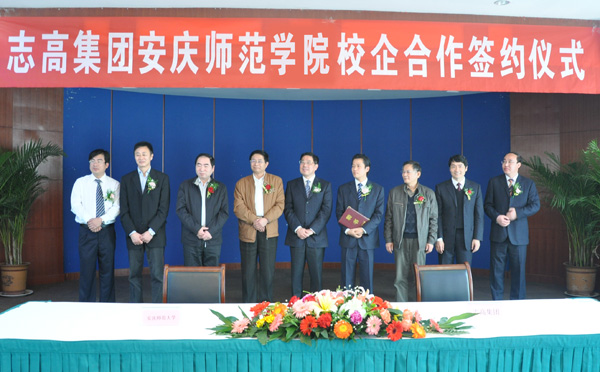 洽谈会上,何小祥书记为志高集团副总裁李跃城颁发了兼职教授聘书,党委副书记、院长朱士群发表了热情洋溢的讲话,副院长张群、志高集团副总裁李跃城分别代表双方签订了《安庆师范学院 泰安志高实业集团有限责任公司战略合作协议书》和《泰安志高实业集团有限责任公司在安庆师范学院设立“志高”奖学金的协议书》。