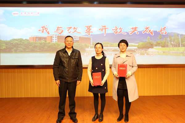 11月12日下午,由党委宣传部、教师工作部和校工会联合举办的“我与改革开放共成长”主题演讲比赛在外语楼成功举办。校长闵永新到场为获奖选手颁奖并表示祝贺。党委宣传部、教师工作部、校工会、机关党委等部门相关负责同志,部分教师和各学院学生代表观看了本次比赛。