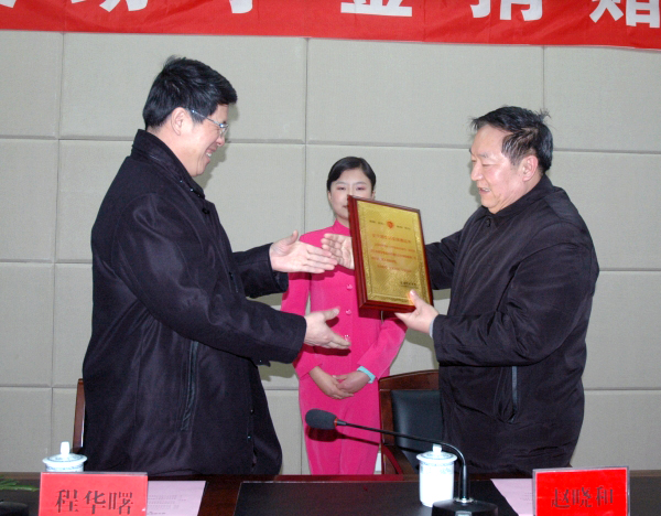 仪式上,赵晓和书记向程华曙董事长颁发了捐赠证书。