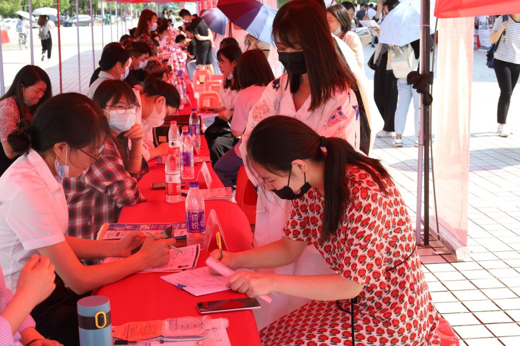 挎上背包,手拿简历,早在招聘会开始前,不少学生便带上“两件套”抵达现场,辗转于各个红色帐篷间,驻足于每块展板前,浏览各展位前的招聘信息,以找寻适合自己的岗位。他们不时向用人单位询问薪资待遇、发展前景等问题,招聘方热情详细地向学生们进行解答。