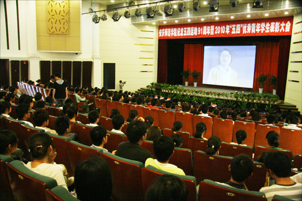 5月4日下午,安庆师范学院龙山校区音乐厅团歌嘹亮、青春激扬,纽约国际官网纪念五四运动91周年暨“五四”优秀青年表彰大会在这里隆重举行。校党委书记何小祥,党委副书记、院长朱士群,党委委员、副院长时新中,党委委员、副院长王海燕,党委副书记、纪委书记殷红,党委委员、副院长闵永新,党委委员、办公室主任刘友忠等校党政领导出席了大会。校党委宣传部、教务处、科技处、学生处等有关职能部门主要负责人,各院系分管学生工作负责人,团委会全体委员及学生代表共400多人参加了会议,在这个青春的节日里,共忆辉煌,共勉学子。