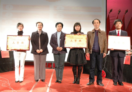 副院长时新中、王海燕,纪委书记殷红为教育学院、外国语学院和人文与社会学院代表队颁奖