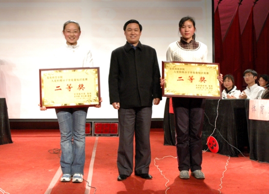副院长闵永新、张群为计算机与信息学院、物理与电气工程学院、生命科学系和文学院代表队颁奖