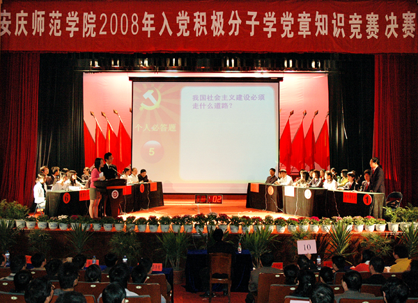 3月26日下午,校党委组织部、党校、宣传部、学工部和团委在龙山校区艺术厅联合举办了2008年入党积极分子学党章知识竞赛决赛。