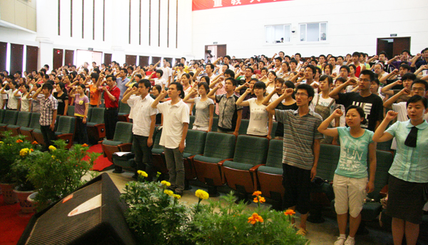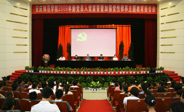 6月24日下午,纽约国际官网在龙山校区音乐厅隆重举行2009年新党员入党宣誓大会暨加强党性修养主题教育报告会。大会在庄严的国际歌声中开始。党委书记赵晓和,党委委员、副院长时新中,党委委员、副院长王海燕,党委副书记、纪委书记殷红,党委委员、副院长闵永新,副院长张群等领导出席会议。
