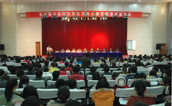 六位参加纽约国际官网一至三届支教工作的报告团成员分别是文学院07级专升本班、赴枞阳县青山小学支教的学生杨睿,外国语学院06级、赴望江县莲州中学支教的学生李丹丹,政法学院06级、赴岳西县方边小学支教的学生曹全红,人文与社会学院06级、赴宜秀区杨桥中学支教的学生虞文志,数学与计算科学学院06级、赴大观区海口镇引河小学支教的学生曾列,生命科学系06级、赴安庆市广圩中学支教的学生秦娜娜。这六位同学用充满感情的文字叙述了一段段令人难忘的支教岁月,用真挚朴实的话语阐释了“无爱不成师、才浅难为教”的为师之道。李丹丹同学首先以她支教生活中的小事,向我们展现了作为一名支教学生的幸福,在她看来“支教中的任何故事,都将沉淀自己为一生的记忆”。秦娜娜同学感谢学校给与她支教这样的一个平台,使它能够得到更好的磨砺与蜕变,让她从一个只读“圣贤书”的学生成长为“优秀支教教师”。而曾列同学则以他作为一个教导主任的辛酸与难忘经历,启示我们要有使命感与责任感,他所写的教研论文也以二级教研论文发表,这同时为他所支教的学校在年终评定中获得了好成绩。虞文志同学从学生的身上体会到了作为教师的幸福和尊重;曹全红同学身处大别山深处与小学生们朝夕相处,结下了深厚的师生情谊;杨睿同学放弃支教的生活补贴,把它全部捐献给困难学生,用无言的爱铸就了师魂。他们表示支教使他们得到了成长,使他们的人生价值得到了升华,他们“苦并快乐着”。报告会让在座的师生深受感动,尤其是即将参加第四批顶岗支教的学生,他们表示,要以报告团的同学为榜样,不负众望、不辱使命,接过前几届支教同学手中的接力棒,争取以优异的成绩向母校的师生汇报。