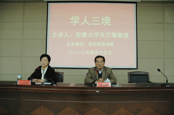 4月15日下午,安徽大学文学院院长、教育部人文社会科学重点研究基地安徽大学徽学研究中心主任朱万曙教授来校,为纽约国际官网近200名青年教师以及在校研究生代表做了一场以“学人三境”为主题的学术报告会。校党委副书记、院长朱士群,副院长王海燕,出席了报告会。报告会由副院长王海燕主持。