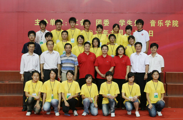 在歌咏会现场,一直有身着印有校徽的黄衫的学生“四成”服务大厅志愿者队伍活跃在其中。他们谨慎确认进入场、上下台的路线,主动和带队老师接洽,高举指示牌以便各代表队按序就坐,带领一支支参赛队伍进场、入座、上台,协助老师发放节目单。志愿者一丝不苟的工作,使得十九个代表队1200余名演员有序进入场,使得容纳近2000人的会场秩序井然,确保了整个演出活动的顺利进行。在长达五个小时的活动中,在全场观众热情如火的同时,志愿者们一直专心致志地坚守在各自的岗位上,他们不怕苦、不怕累,充分展现了良好的精神面貌,树立了学生“四成”服务大厅良好的服务形象。