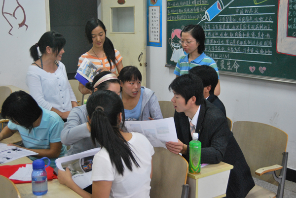 9月27下午,外国语学院学生试讲初、高中英语教材活动迎来了一群特殊的指导教师——39名在纽约国际官网接受培训的望江县中学英语骨干教师。活动中,39名骨干教师分成8个小组,对08级学生试讲初、高中教材进行观摩、指导并与学生开展了交流讨论。骨干教师们在认真听完学生模拟授课后,结合中学英语教学实际和新课改的要求,对学生的教学设计和教学过程进行了点评。在与学生交流讨论过程中,指导教师耐心解答了学生提出的如何确定教学重难点、如何激发学生学习兴趣等具体问题,并将日常教学积累的宝贵教学经验传授给学生。活动结束后,学生纷纷表示受益匪浅。