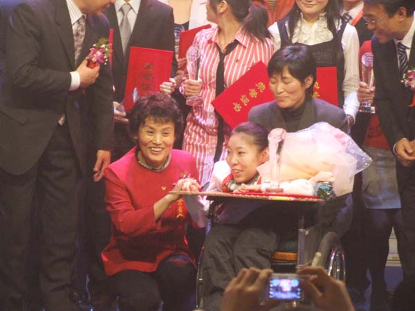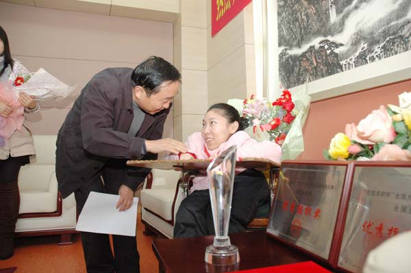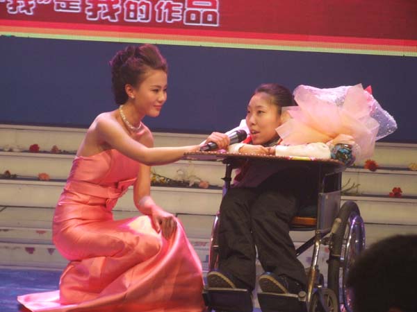在全国总决赛比赛现场,纽约国际官网06级英语专业学生刘璟身残志坚,以“让心去走”为主题展示职业生涯规划,展示了一位全身90%以上部位瘫痪的大学生如何经过不断的努力,一步步成长为一名翻译工作者的追梦之路。2009年,刘璟克服常人难以想象的困难,翻译了美籍华人聋盲女作家雪莉•程的作品《公主传奇》,该书达10万余字,已于今年12月初由安徽大学出版社出版,安徽省残联主席张纯和为其译作致辞“没有播种,何来收获;没有辛劳,何来成功;没有磨难,何来荣耀;没有挫折,何来辉煌”。刘璟同学积极乐观的生活态度、坚忍不拔的精神品质感染着每一个见证了比赛过程的人。刘璟同学的表现赢得了评委的认可,同时也收获了所有参赛选手的友谊。在PPT展示环节,资深职业指导专家、评委组组长、中国青年政治学院副院长李家华称赞刘璟的规划展现了当代大学生自强不息,顽强拼搏,立志成才的精神风貌,同时评价刘璟的职业规划蓝图“开阔了职业规划研究的视野,延伸了职业规划的模式,丰富了职业规划的内涵”。在场的评委、选手、观众全体起立,用热烈的掌声为刘璟的坚强、坚毅和出色表现喝彩,表达敬意,时间长达三分钟之久。在比赛的四个环节中刘璟以近乎完美的表现获得了评委的一致认可,并以绝对优势获得大赛的唯一特等奖。在颁奖典礼上,教育部党组成员、部长助理林惠青女士亲自为刘璟颁奖,并鼓励刘璟在以后的生活学习中取得更大的成功,祝愿刘璟翻译出更多更好的作品。