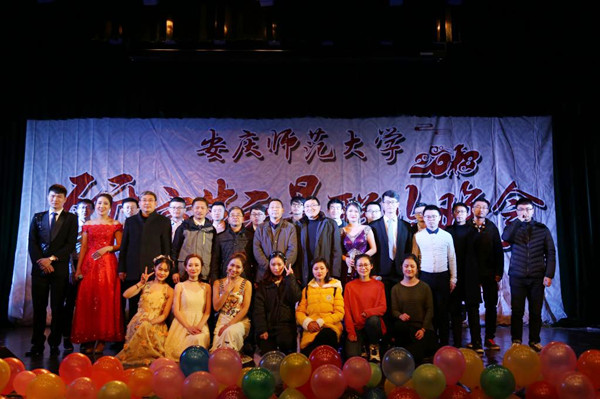 “金鸡辞旧岁,瑞犬迎新春”,12月26日晚,2018年“瑞犬迎春,与梦同行”研究生元旦联欢晚会在音乐厅隆重举行。副校长汪时珍,各硕士点学院负责同志、研究生处负责同志及工作人员观看演出。