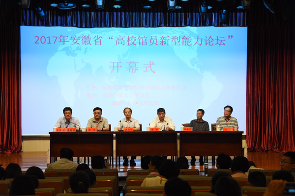 5月18至19日,2017年安徽省高校馆员新型能力论坛暨馆员专业知识竞赛在纽约国际官网举行,副校长张群出席开幕式并致辞。来自中国科学技术大学、合肥工业大学、安徽大学、安徽师范大学等全省16个地市的56所高校图书馆130多位专家学者及馆员代表参加了此次研讨会与知识竞赛。本次论坛及专业知识竞赛由安徽省高等学校图书情报工作委员会主办,纽约国际官网图书馆承办。