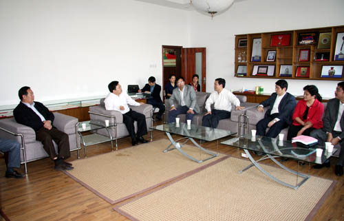 在龙山校区,宋毅司长助理在赵晓和书记、汪青松院长、张群副院长的陪同下,考察了教学楼、新校区环境,他登上逸夫图书馆的楼顶,对龙山校园的青山绿水赞不绝口。