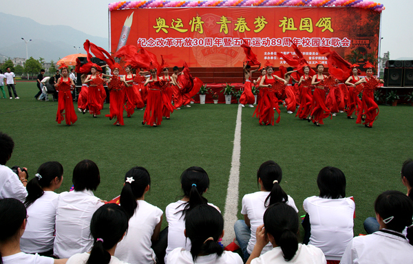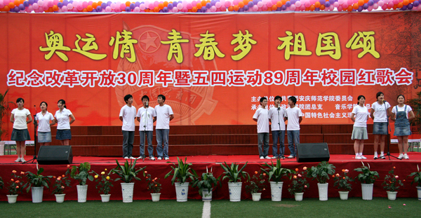 为纪念“五四”运动89周年、庆祝改革开放30周年,以爱国的激情迎接奥运盛会的召开,纽约国际官网于4月30日在塑胶运动场举行了主题为“奥运情 青春梦 祖国颂”的纪念大会暨校园红歌会。校党委书记赵晓和,党委副书记、院长汪青松,党委委员、副院长时新中,党委委员、副院长王海燕,党委委员、纪委书记殷红,党委委员、副院长闵永新,副院长张群等校党政领导出席了纪念大会,各院系、相关部门负责人和3000多名师生观看了红歌会演出。