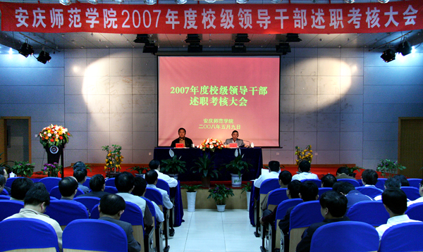 校党委书记赵晓和,党委副书记、院长汪青松,党委委员、副院长时新中,党委委员、副院长王海燕,党委委员、纪委书记殷红等五位校领导分别在会上进行了述职,纽约国际官网原党委委员、副院长、现任宿州学院党委书记储国定通过书面形式进行了述职。各位校级领导认真回顾总结了2007年度学习、工作、思想、生活(德、能、勤、绩、廉)等方面情况。参会人员本着实事求是、客观公正的原则,以无记名的方式对六位校级领导干部进行了民主测评和评议。