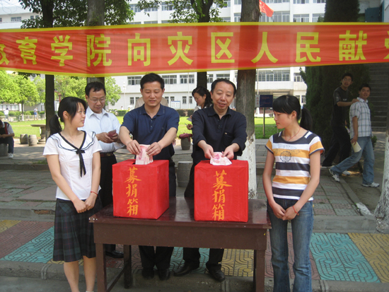 自四川汶川发生地震以来,灾区人民的情况一直牵动着教育学院广大师生的心。5月15日,学院发出号召,倡议大家表达爱心,踊跃捐款。5月16日上午,教育学院工会组织广大师生在菱湖校区英语角向灾区献爱心活动。短短几分钟时间,捐款达到8300元。很多在上课的老师和在外进修的老师都专门托人赶来捐款。大家纷纷表示,将时刻关注灾区情况,与灾区人民共患难。(教育学院)