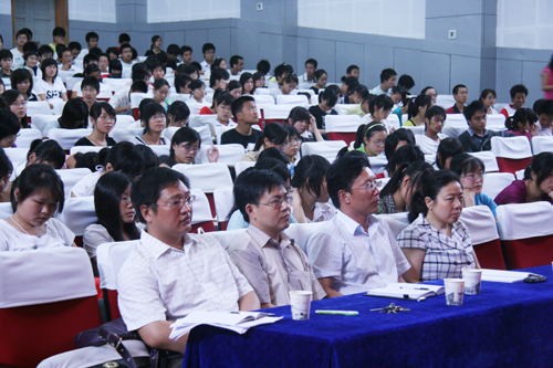 钱教授从联系和差别的角度谈到了何谓人生智慧,列举一些典型的案例,深刻阐述了人生智慧在人生过程中不同领域的应用,他用风趣幽默的语言,将“人生智慧”与当代大学生的状况联系起来,希望大家充分运用学习智慧、表达智慧、行动智慧、道德智慧来促进个人成长。钱教授把自己的人生座右铭“成长快乐”与大家一起分享,希望同学们懂得感恩,学会自爱。钱教授思路清晰,见解深刻,以其幽默生动的语言、充满睿智的思想,博得了在场师生的阵阵掌声。