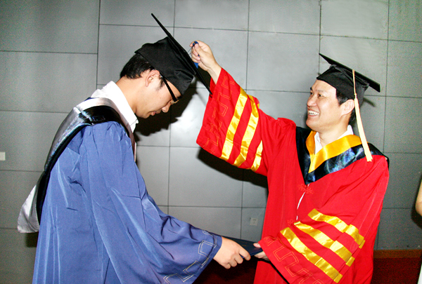 毕业典礼上,导师代表、化学化工学院院长、硕士研究生导师吴根华教授,2008届硕士研究生代表陈传宝同学先后发言。(文/学科建设与研究生教育处 图/宣传部)
