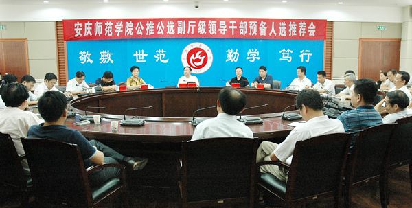 会上,与会人员用无记名投票的方式,认真填写《2008年安徽省公推公选副厅级领导干部公开推荐表》,对自愿报名、符合条件的领导干部人选进行了民主推荐。纪委、组织部及时对推荐情况进行了认真、公正的统计。