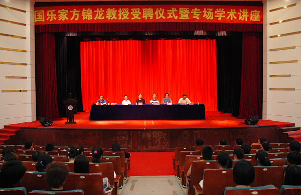 受聘仪式在热烈祥和的气氛中进行。时新中副院长发表了热情洋溢的讲话,他的一句“锦绣中华五弦乐,龙山龙水育龙人”既表达了对方教授在国内乐坛取得的成就给予高度赞扬,又对音乐学院人才培养寄予厚望;胡南亭部长也对方教授能接受家乡高校聘任,愿为家乡文化艺术事业发展做出贡献表达了敬佩和感谢之意;音乐学院副院长荀安华副教授代表全院师生对方锦龙教授的到来及受聘致欢迎辞。