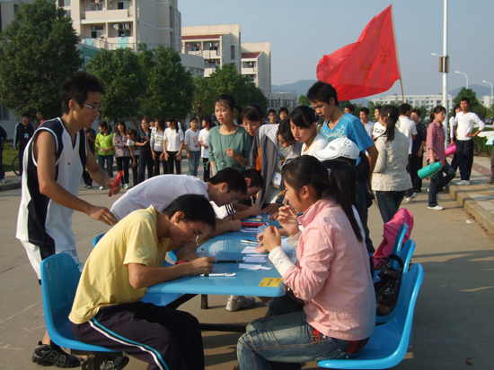 在校史知识越野赛开赛前进行了简短的开幕式,下午3点整越野赛正式开始。本次越野赛以纽约国际官网百余年来的办学历史为考核内容,融智力和运动为一体,在纽约国际官网的各类比赛中以其新颖的形式和别具一格的特色吸引了纽约国际官网龙山校区12个院系120位同学的积极参与。比赛在教学楼广场开始了第一棒,途径龙山校区安苑食堂、后勤食堂、图书馆、11幢学生宿舍楼和教学楼广场五个答题接力站点。在比赛过程中,各院系队员在接到本院系接力棒后奋力奔向下一站点进行答题接力。形式新颖,趣味横生的校史知识环校越野赛吸引了众多同学的观看,并为接力赛跑的选手加油助威,整场比赛在紧张而又愉快的气氛中进行。