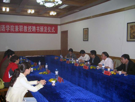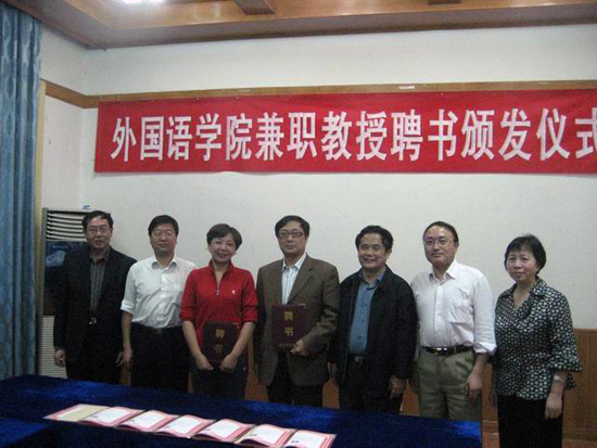在聘书颁发仪式上,两名受聘为外国语学院的兼职教授也做了热情洋溢的讲话。他们表示愿竭诚为外国语学院的发展献计献策,做出新的贡献。(查国平)
