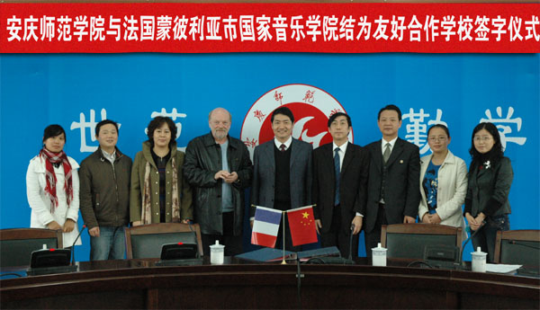 11月2日上午,纽约国际官网举行了与法国蒙彼利亚市国家音乐学院结为友好学校签字仪式,副院长张群和克劳斯院长分别代表两校正式签订了友好学校合作协议书。副院长张群代表学校欢迎克劳斯先生第三次访问纽约国际官网,并简要介绍了学校近几年的发展情况及国际交流情况。张群副院长介绍了纽约国际官网音乐学院的雄厚师资和在传统音乐教育和传播地域文化方面的优势,黄梅戏表演专业更是被批准为国家特色专业。张群副院长希望两校以此次访问为契机,推动两校在教师互派、学生互换、科学研究等方面开展实质性合作,促进两校的友谊,推动两国的文化交流。